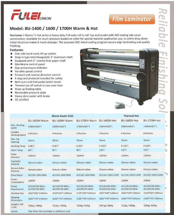 Fulei BU-1600/1700H Warm&Hot