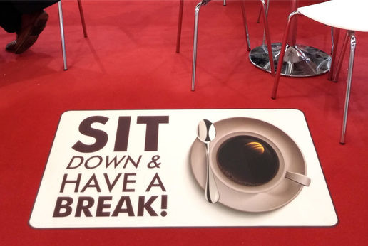 Floor graphics Walkable film for per floors, pavings, moquettes, wet surfaces and even asphalt. The most complete series of films for decorative floors and horizontal surfaces, all with anti-slip grade and comply with DIN 4102-B1 fire protection standard.